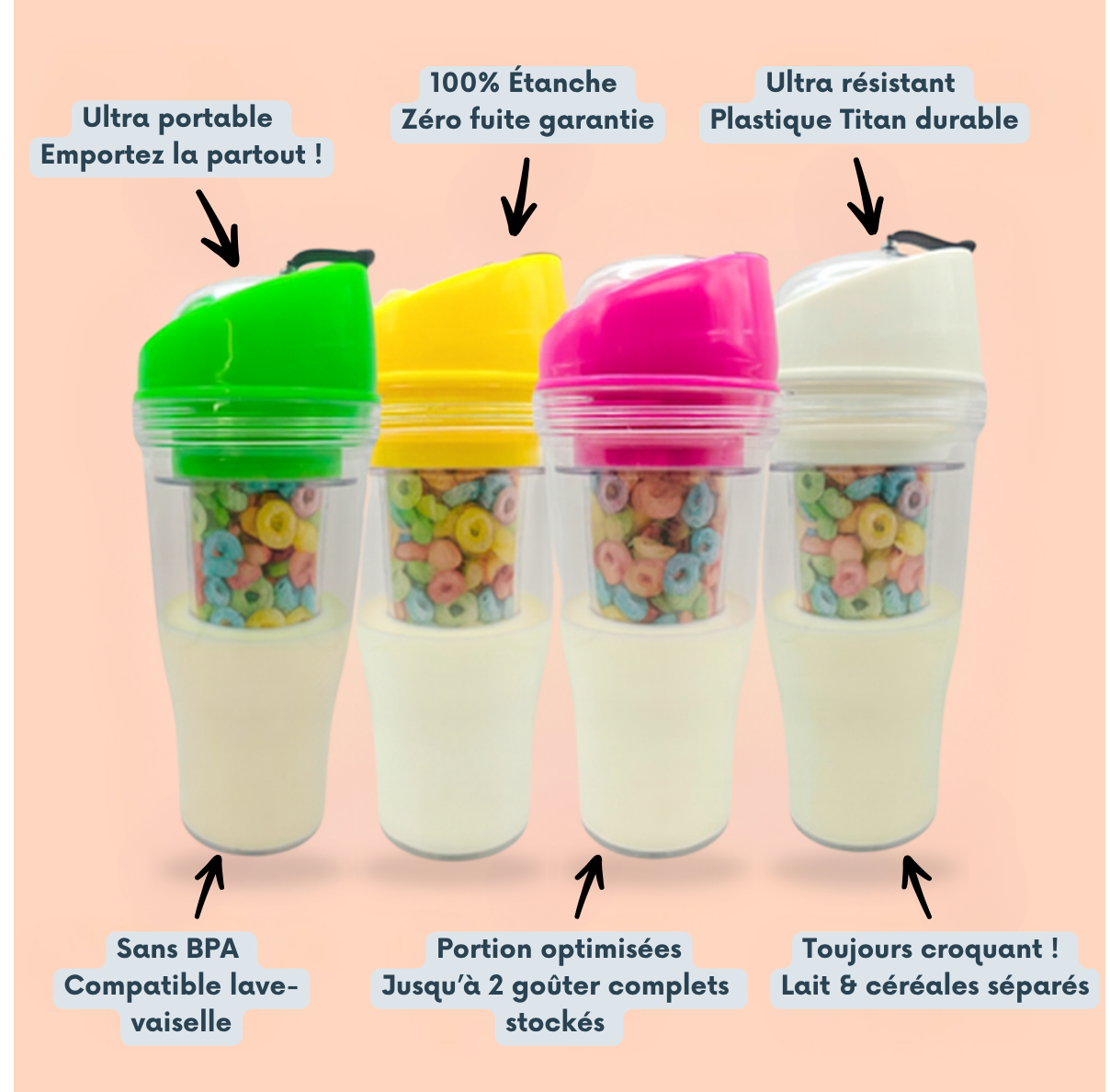 Oubliez le bol et la cuillère : attrapez votre CrunchGo et emportez vos céréales partout où la vie vous mène !